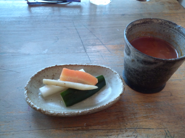 セットなのでピクルスがついてくるのがいい。結構すっぱいから人によっては好みがわかれそう。